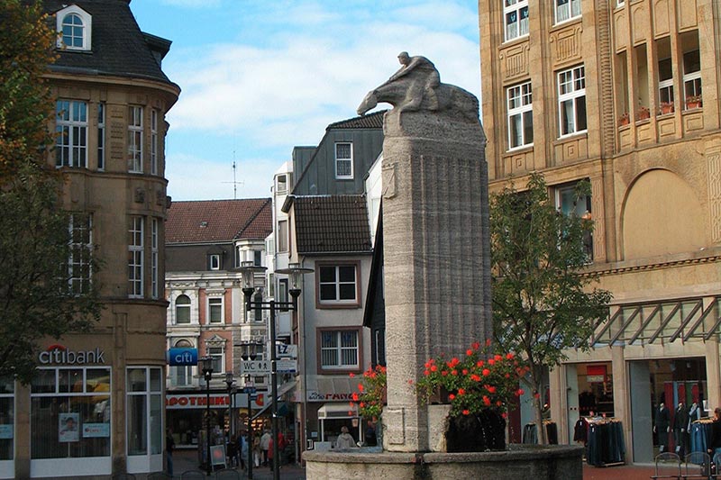 Beeindruckend ist auch der Forumkomplex am geografischen Stadtmittelpunkt. Stadt- und Europahalle wurden, genau wie das Rathaus, von den bekannten dänischen Architekten Arne Jacobsen und Otto Weitling geschaffen. Die schwungvollen Dächer, Zeugnis der Baukunst der 1960er und 70er Jahre und damals eine Weltneuheit, tragen den liebevollen Beinamen "Sprungschanze".